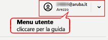 - il menu utente: consente di effettuare tutte le operazioni principali relative alla propria registrazione su Aruba.it e quindi ai dati utente come cambio password, gestione dei consensi, creazione di una nuova login...
